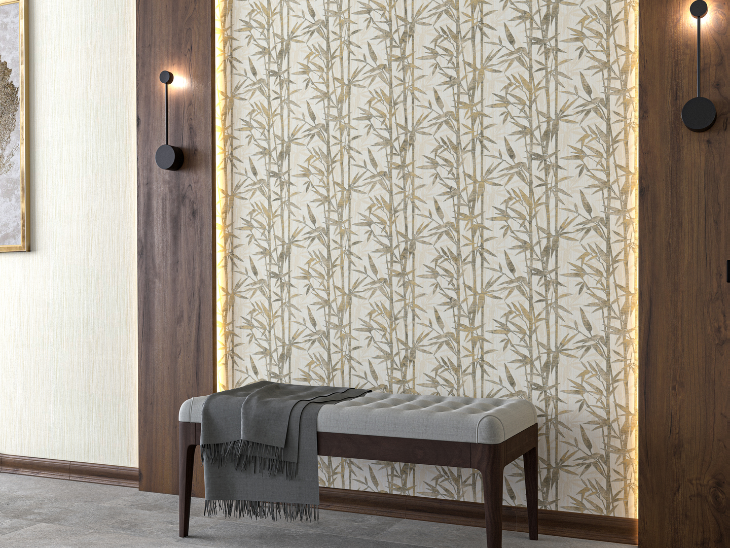 Обои виниловые Бамбук мотив, бежевый светлый, золотой
