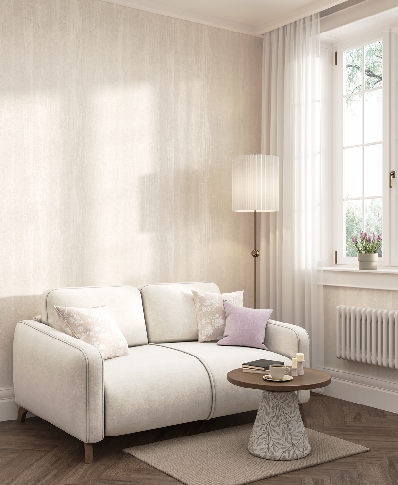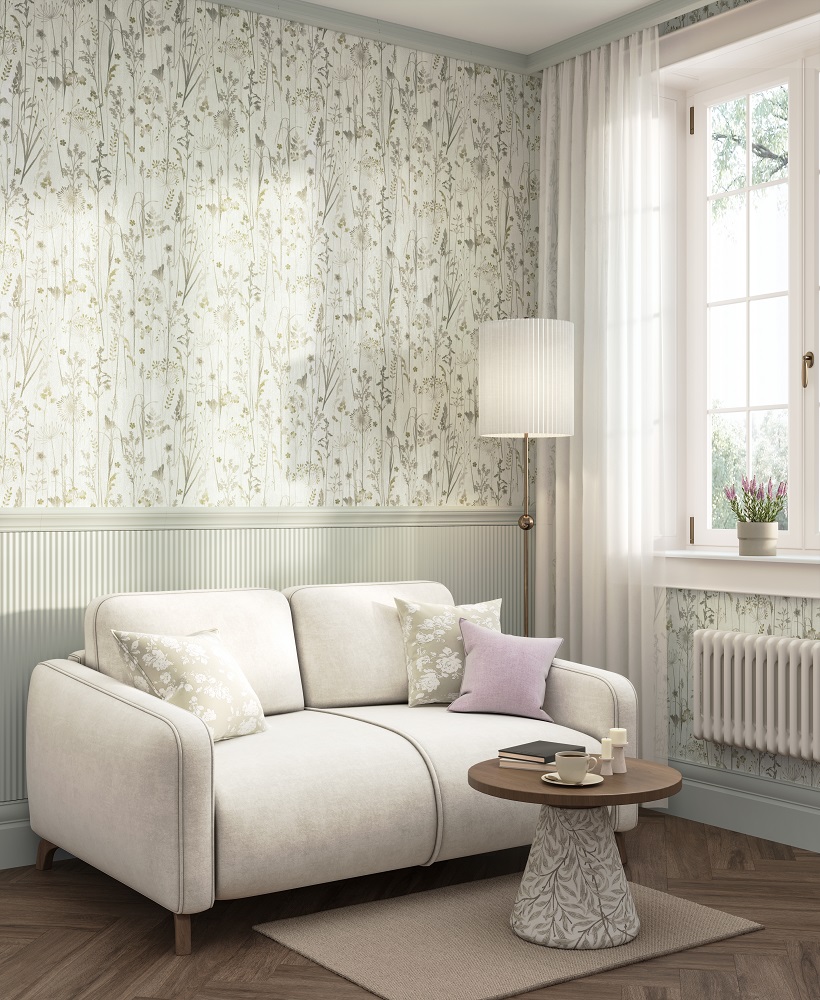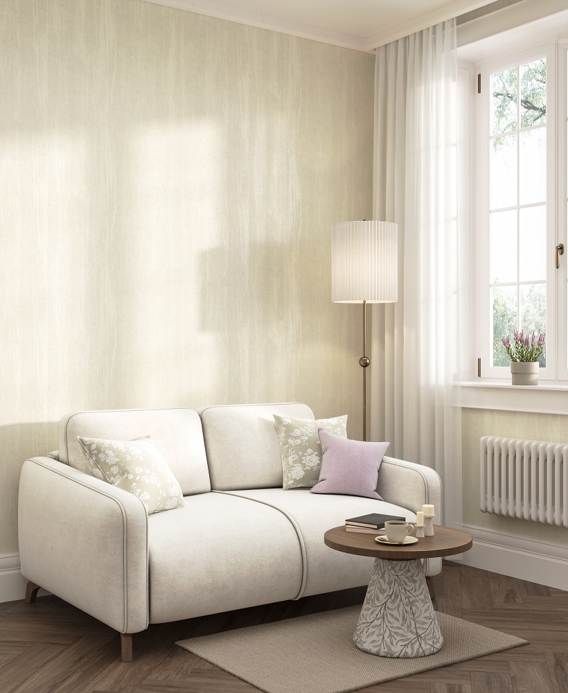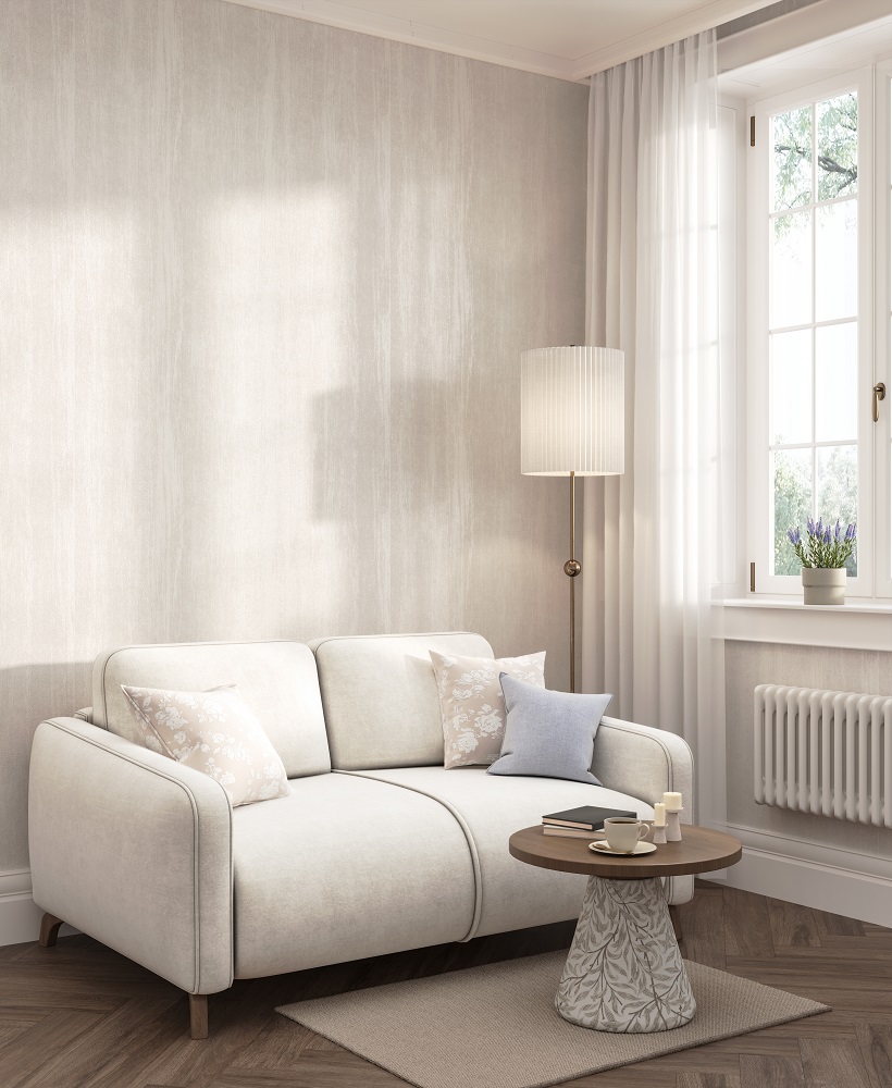 В серии «Платан» представлены пять базовых артикулов с тиснением, рисунок которого напоминает структуру дерева. Предложенная гамма — спокойная, подчёркивающая естественную красоту поверхности в светлых цветах крашеной древесины. Деликатная древесная структура, также напоминающая складки шёлка, использована и на трёх мотивах. Их графика связана с луговыми травами, которые проступают более активно на зелёном и бежевом артикулах, и растворяются в фоне на светло-сером.